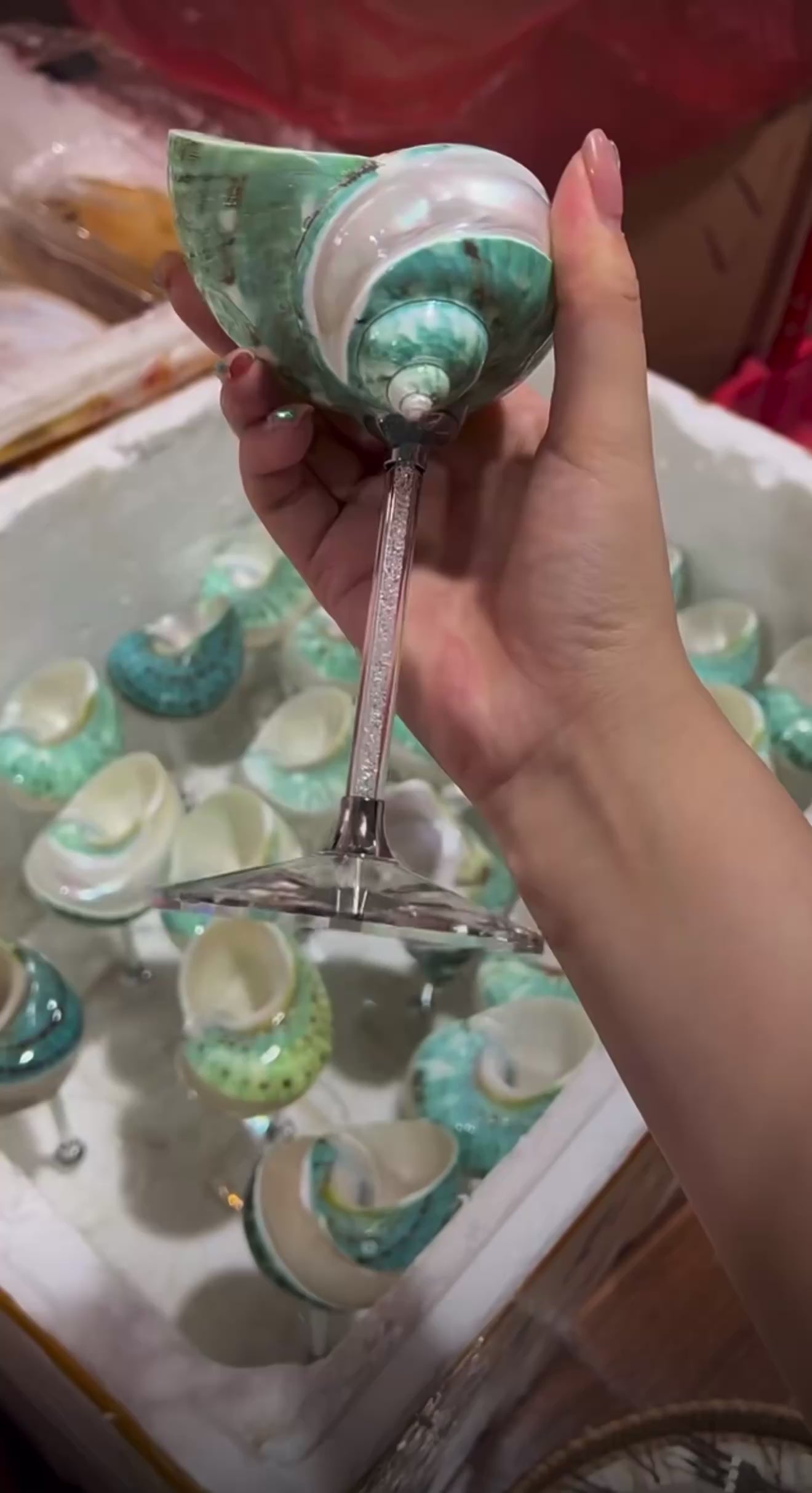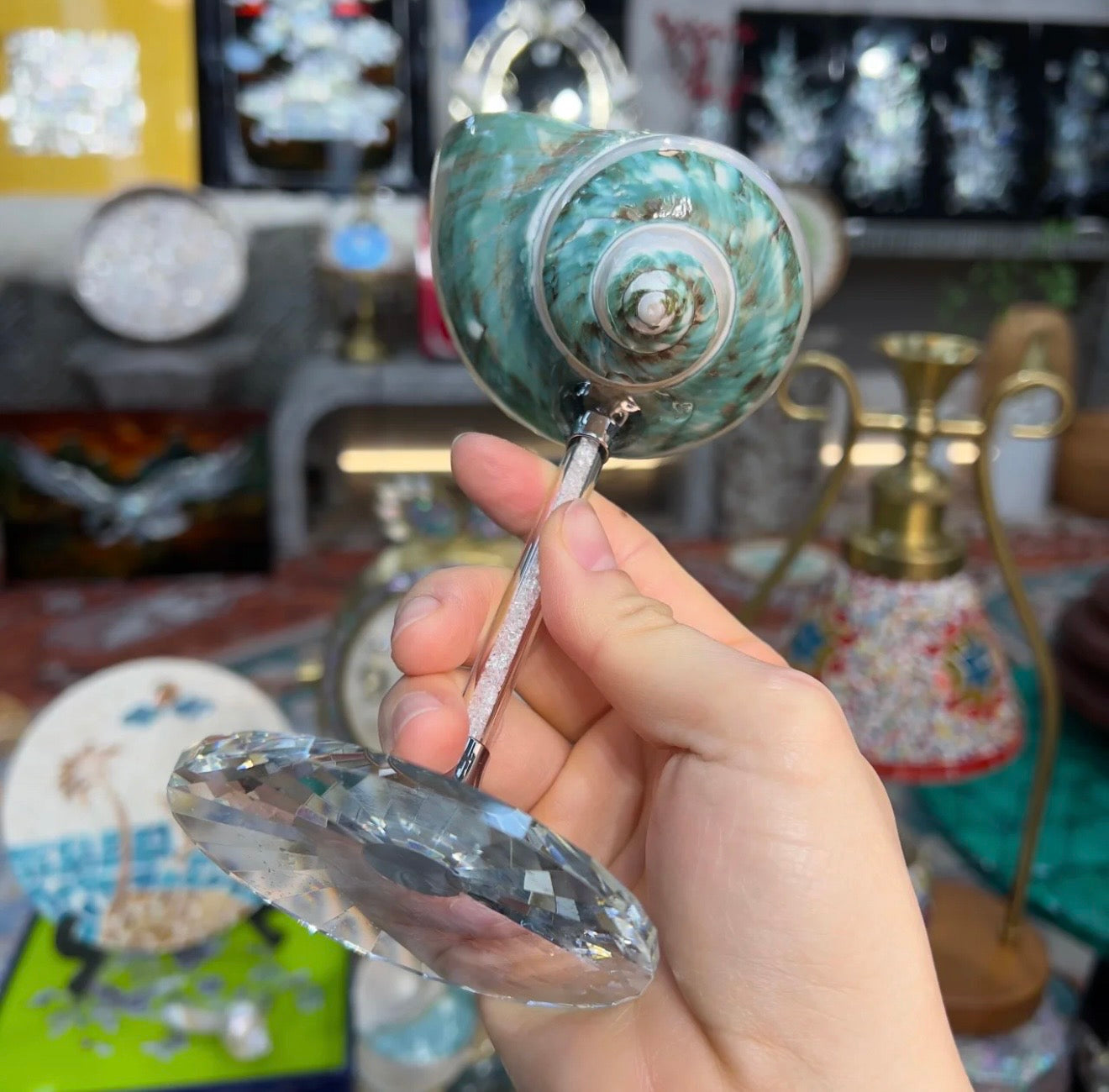 Green "Galaxy Conch" Deep-Sea Shell Handmade Wine Glass Ornament | 1pc