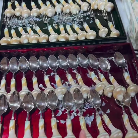 Natural Conch Dinner Spoons & Fruit Forks - A Pair